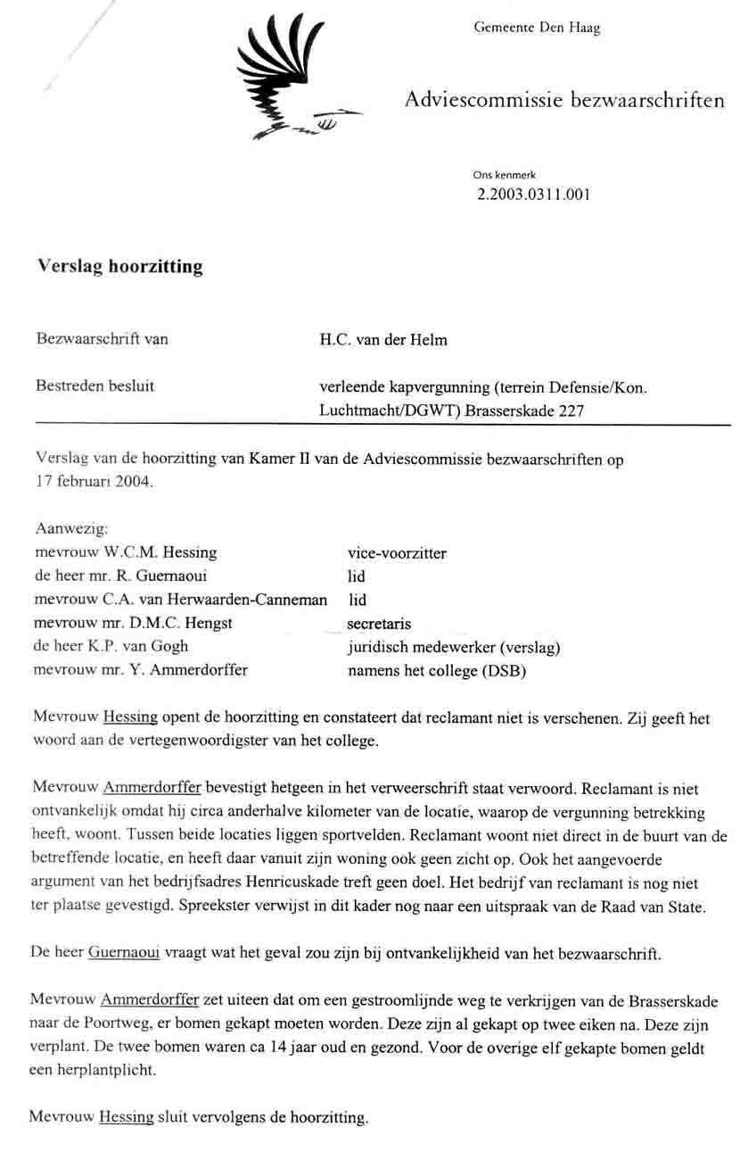 De bezwaarmaker krijgt nadat de behandeling in de commissie heeft plaatsgehad een uitvoerig verhaal te horen waarom hij niet als belanghebbend wordt gezien.